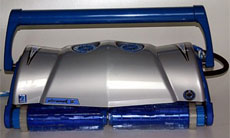 Commercial Swimming Pool Cleaning Robot comprises driving system with two motors, gears, belts and wheels and also filters and two submersible pumps. The robot has two infrared sensors (to identify the pool’s wall), and remote control.