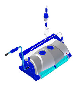 The robot moves on the pool’s bottom according to a special program and cleans the pool.