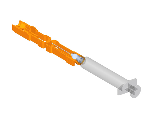 The guard packaging protects the unique medical syringe needle (approximately 70 microns outer diameter) with unique needle tip from shocks and undesirable contacts with metal parts and fingers.