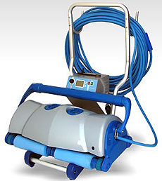 The robot moves on the pool’s bottom according to a special program and cleans the pool.