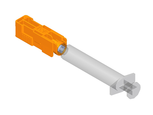 The guard packaging protects the unique medical syringe needle (approximately 70 microns outer diameter) with unique needle tip from shocks and undesirable contacts with metal parts and fingers.